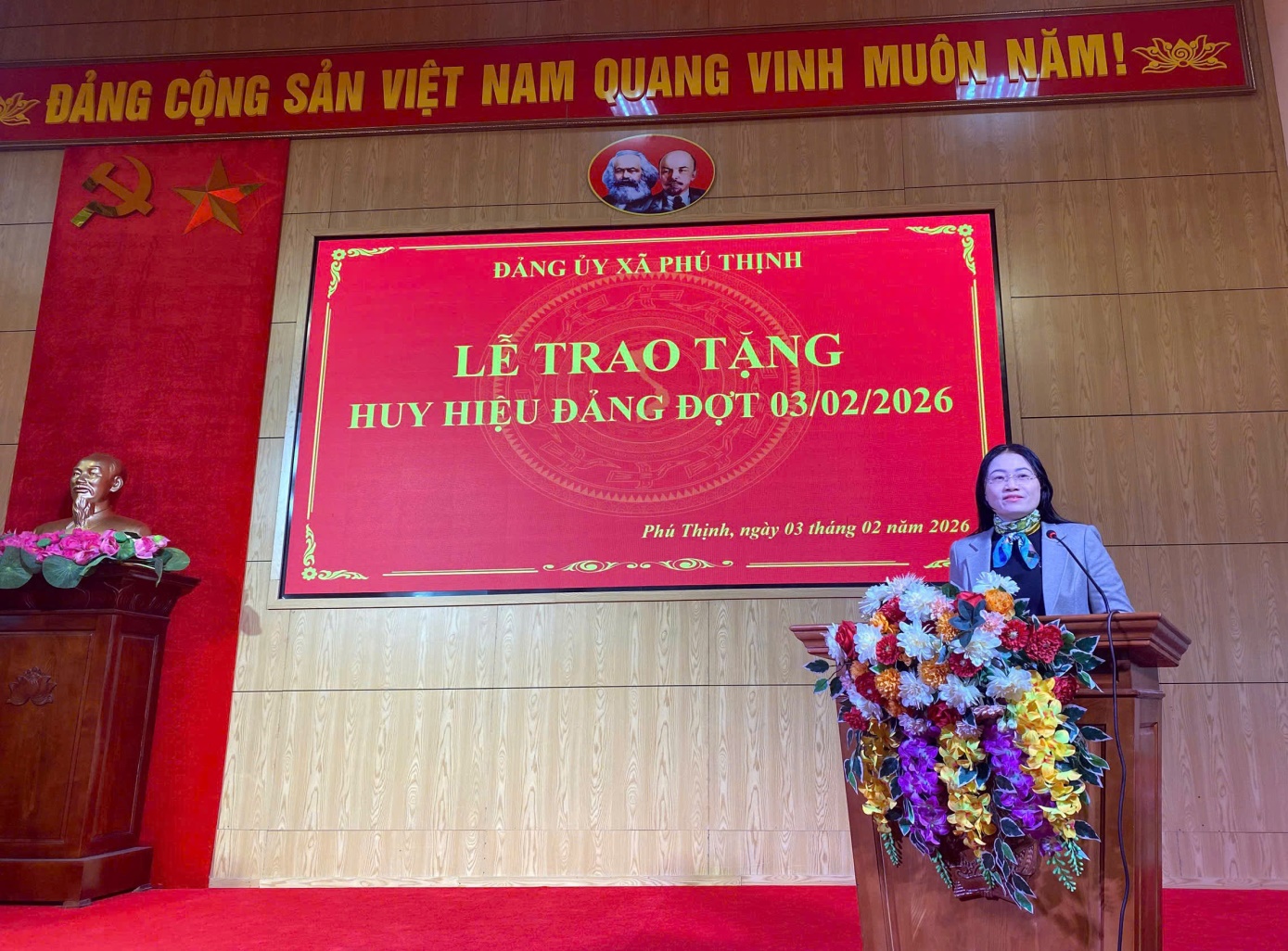 Thay mặt cho Ban chấp hành Đảng bộ tỉnh Thái Nguyên, đồng chí Vũ Thị Lệ Hằng trân trọng chúc mừng Đảng bộ xã Phú Thịnh nhân kỷ niệm 96 năm Ngày thành lập Đảng (03/02/1930 – 03/02/2026) và đặc biệt chúc mừng đến 4 đồng chí đảng viên được tặng Huy hiệu Đảng.