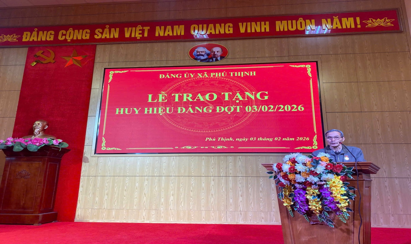 Huy hiệu Đảng là phần thưởng cao quý của Đảng, được trao tặng cho những đảng viên đã bền bỉ phấn đấu, suốt đời tuyệt đối trung thành với mục tiêu, lý tưởng của Đảng, của cách mạng Việt Nam. Cũng như hàng triệu đảng viên của Đảng ta, mỗi năm tuổi Đảng là một dấu mốc của rèn luyện, thử thách và cống hiến; minh chứng cho bản lĩnh chính trị, phẩm chất đạo đức và tinh thần phụng sự Tổ quốc, phục vụ Nhân dân. Huy hiệu 55 năm tuổi Đảng, 45 năm tuổi Đảng được trao tặng 4 đồng chí không chỉ là sự ghi nhận xứng đáng đối với cá nhân mà còn thể hiện niềm tin, sự trân trọng và ghi nhận của Đảng đối với quá trình công tác, cống hiến của các đồng chí. Đây cũng là nguồn động viên, cổ vũ to lớn đối với toàn thể cán bộ, đảng viên xã Phú Thịnh, đặc biệt là thế hệ trẻ trong việc rèn luyện, kiên định lý tưởng, không ngừng học tập, phấn đấu và cống hiến cho địa phương, cho Đảng, Nhà nước và Nhân dân.